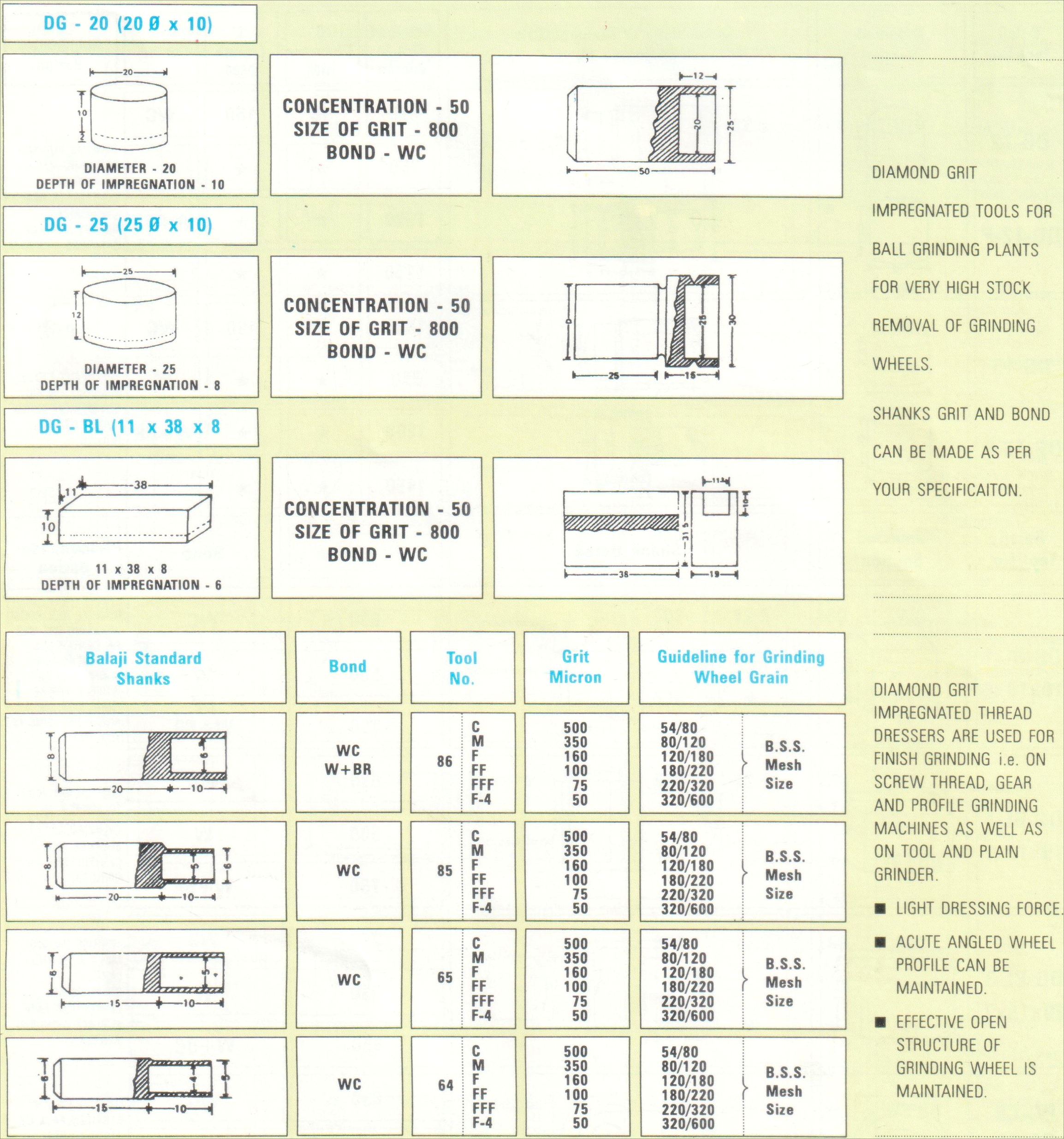 Balaji Grit Impregnated Dressers are used mainly for finish grinding, i.e. on screw-thread gear, thread gear teeth and profile grinding machines as well as on tool grinders, plain grinding machines and ball grinding plant.